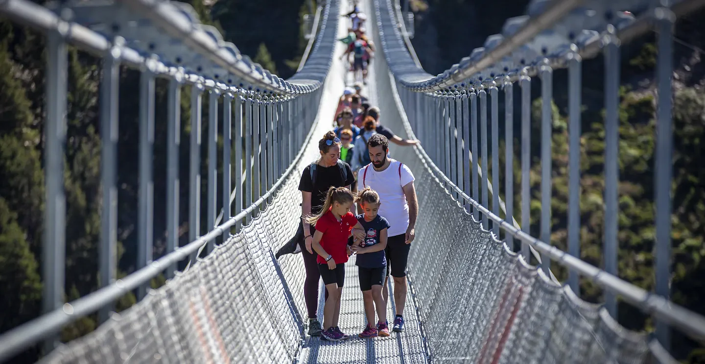 El Pont Tibetà de Canillo t'ofereix una experiència d'alçada, amb més de 600 metres sobre el terra i tot just 1 metre d'amplada, et sentiràs com si estiguessis volant!