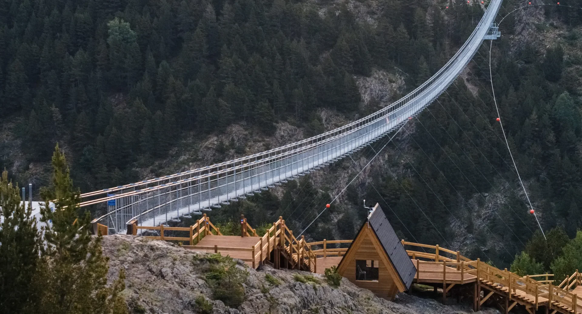 El Puente Tibetano de Canillo te ofrece una experiencia de altura, con más de 600 metros sobre el suelo y apenas 1 metro de ancho, ¡te sentirás como si estuvieras volando!