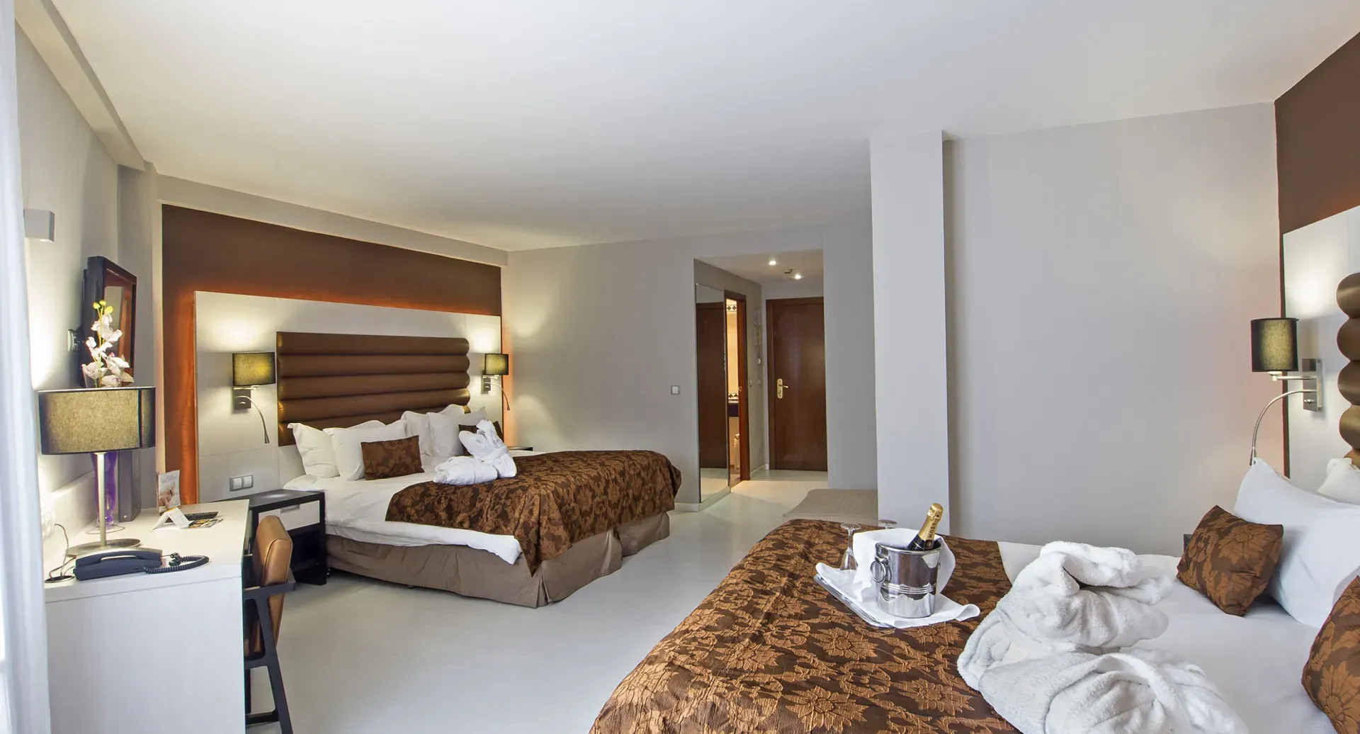 Chambres confortables avec trois options d'aménagement : communicantes par trois portes, séparées par une porte coulissante, ou en chambre individuelle avec deux lits simples et un lit double. L'attribution des chambres se fera selon les disponibilités le jour de l'arrivée.